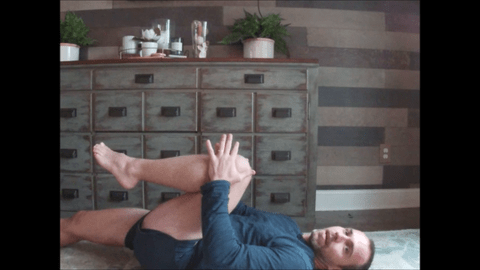 Lay on your back with both legs flat on the ground. Keeping one leg on the ground, slowly bring your other knee to your chest by bending. Bring to the point of tightness (not pain) and hold for 30 seconds. You will feel the stretch in the front and side of your hip flexor. Repeat for the other leg.