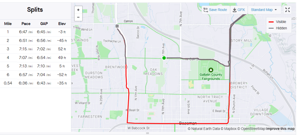 During my trip, I completed a 45-minute threshold run. Bozeman’s streets are laid on a grid system, making navigation easy. I ran down Main Street and other parallel roads with well-marked, dedicated bike paths. I felt safe running along these bike paths and sidewalks.
